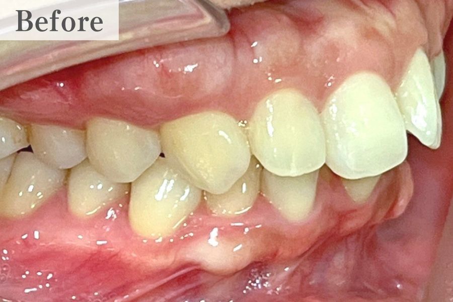 前歯だけでなく、奥歯まで動かす全体矯正によって、口元の突出感がやわらぎ、Eラインが整うケースがあります。