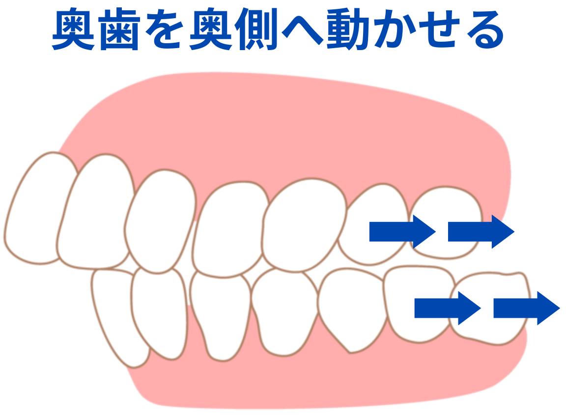 インビザラインでは、親知らずを抜いたスペースに一番奥の歯を動かします。