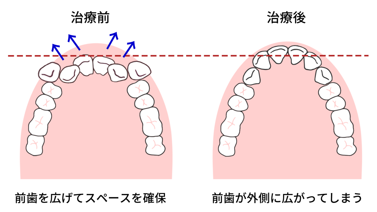 具体的には前から4番目の歯を抜いて、前歯を並べるスペースを生み出します。