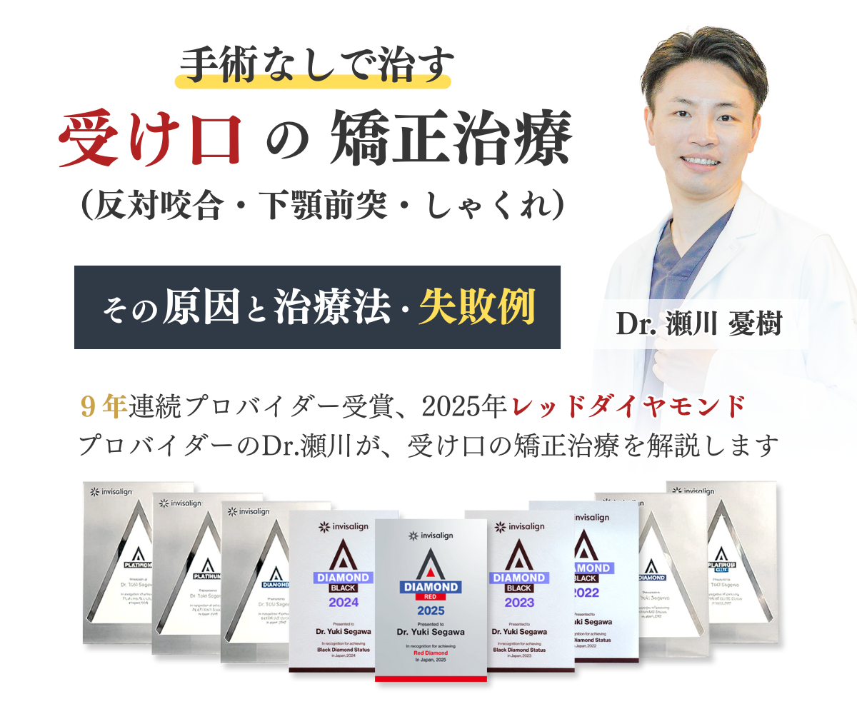ですが上記の治療方法で、受け口の治療が可能な場合も多いですから、ぜひ諦めずにご相談いただければと思います。